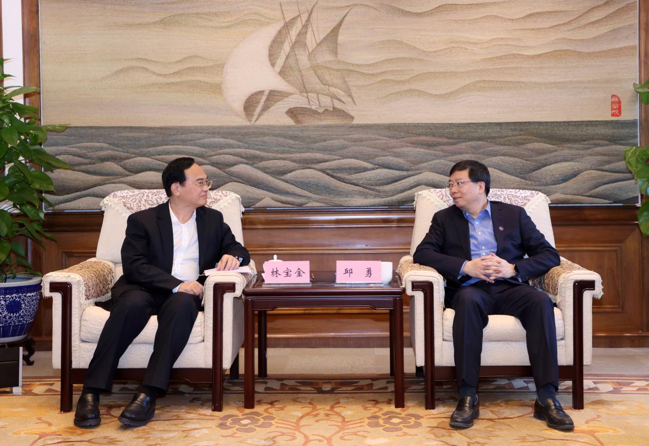 在邱勇和林宝金的共同见证下,双方签署了市校共同推动闽江学院建设发展的合作协议。