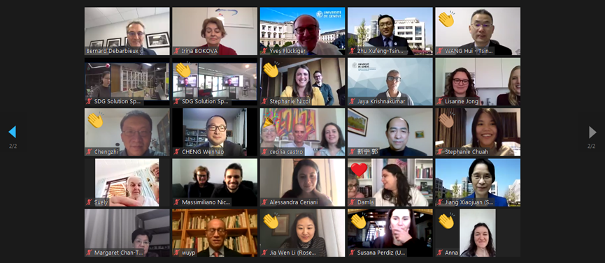 伊夫·弗吕克格尔表示,五年来两校合作关系发展迅速,围绕联合国可持续发展目标在学生实习、联合培养、学术研究等领域开展重要合作和达成实质成果。今天,分别位于日内瓦和北京两地的可持续发展方案研究空间(SDG Solution Space)将启动在线虚拟联结,这一举措不仅有利于促进两校师生交流,也象征着双方五年来形成的高度互信互利的坚实纽带。弗吕克格尔向顾问委员们表示感谢,长期以来各位委员及其所属机构都为两校在科学研究及人才培养等方面的合作提供了强有力的支持。