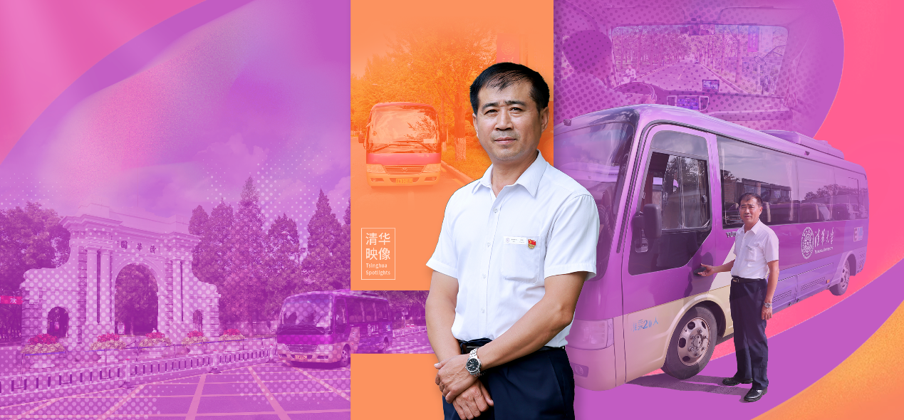 王伟驾驶校车行驶在清华园