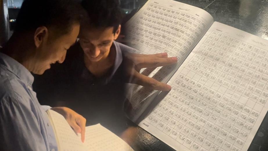 “你好……老师……谢谢……”傍晚的尼罗河边,支队师生偶遇一名正在学习中文的埃及青年。“我学习中文已经六个月了,希望未来能够有机会亲自到中国看看!”得知大家来自中国后,他激动地拿出汉字练习本,迫不及待地展示自己的中文学习成果。