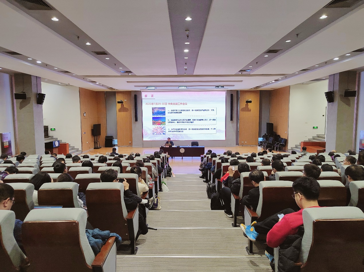 会议邀请北京市委统战部副部长祁金利作专题讲座,他从新时代统战工作的新形势、中央对统战工作的“十二个必须”要求、铸牢中华民族共同体意识的内涵、做好新时代民族工作的重要任务、高校做好民族宗教工作的举措和建议等方面进行讲解,并对学校相关工作提出要求。