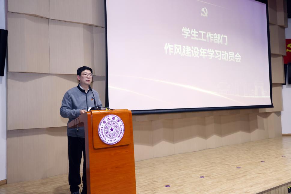 赵岑表示,长期以来,学生工作部门形成了许多优良的工作作风和工作传统,要以作风建设年为契机加以总结传承。学工党委要进一步发挥把方向、定大局作用,坚决履行党委全面从严治党主体责任,以风清气正促欣欣向荣。要在学生工作部门内全覆盖开展作风建设教育,打造新的理论学习活动品牌,推进学习型组织建设。要面向青年教师、团学骨干、学生党员骨干等群体开展专项建设行动,锻造作风过硬的学生思想政治工作队伍。