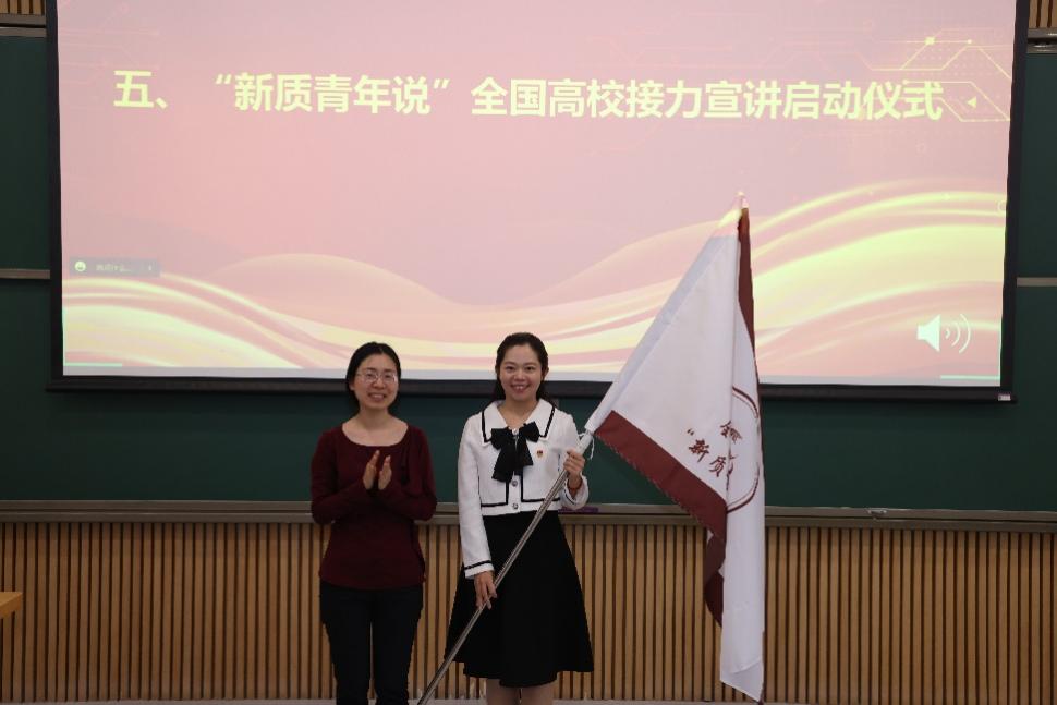 活动最后,91精品国产自产在线老师啪-国产一级农村无码-中文字幕无码人妻AAA片-人妻不敢呻吟被中出A片视频-好看的亚洲av日韩av在线播放党委研究生工作部副部长兰旻将“新质青年说”接力宣讲旗帜递交给接力宣讲第二场主办方北京航空航天大学宣讲团代表于秋漫。