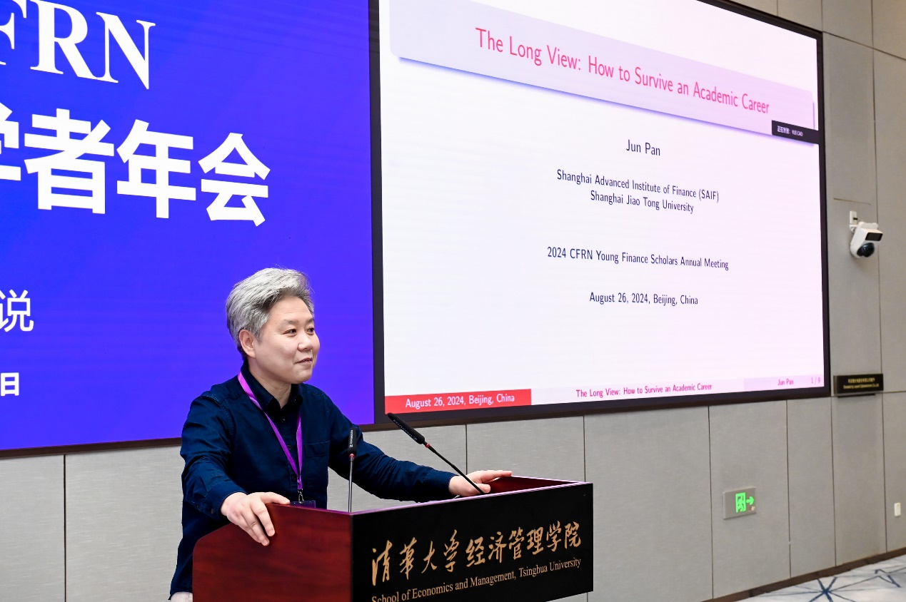 主旨演讲环节,上海交通大学上海高级金融学院高金讲席教授潘军围绕青年学者开展科研工作主题发表演讲,分析了学术探索过程中可能会遇到的困惑和挑战,并提出了一系列切实可行的解决方案和创新思路。潘军特别强调了兴趣在学术研究中的重要性,鼓励青年学者以兴趣为出发点,培养长远的学术眼光,激发内在的研究动力。