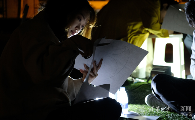 紫荆风情夜现场设置了修车大挑战、小鬼下厨、黄金矿工、劳动工具连连看、光影纸艺等趣味活动。“修车大挑战”环节邀请同学们亲自动手修车,体验装车链、换车胎等过程。或俯身细探、轻拧慢拨,或手执工具、小心翼翼,同学们在动手修车的过程中各显神通。“黄金矿工”游戏点处有一个装满彩色海洋球的波波池,同学们需要背上箩筐,头戴探照灯,寻找混杂在其中的“金矿”小黄鸭。在“小鬼下厨”游戏点,同学们需要在规定时间内用筷子往小方盒中夹入一定数目的花生、黄豆或绿豆。辨豆容易夹豆难,好不容易颤颤巍巍夹起来的豆子,稍有不慎便会前功尽弃。而“劳动工具连连看”游戏则考验同学们能否在规定时间内顺利匹配劳动工具的图片与名称。锄头与铁锹,钉耙与羊角锤,铧犁与龙骨车,丰富各异的劳动工具让不少“只闻其名,不知其形”的同学们大开眼界。