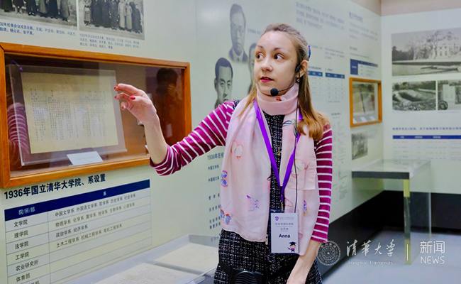安娜 (Kuznetsova Anna)向国际交换生讲解校史 成镇宇 摄