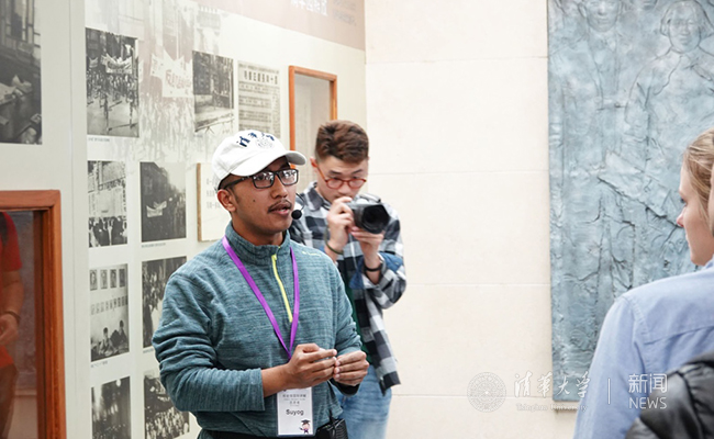 普拉丹 (Suyog Pradhan)向国际交换生讲解清华英烈故事 李光远 摄