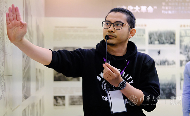 来自核研院2018级印度尼西亚籍硕士生鲁利杜拉 (Rully Hidayatullah)为了给国际交换生新生们带来一场高质量的校史讲解,进行了不下5次的预演练。鲁利杜拉结合自己在清华的亲身经历,对清华“又红又专”的传统,德智体全面发展的培养模式进行了详细的讲解,并带领大家参观了改革开放展,让在场的听众具体感受中国巨大的变化。