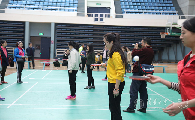 乒乓球趣味比赛是继跳绳、踢毽、健步走之后的又一次以健身为主题的“三·八”节庆祝活动,健身心跳中切磋、交流、叙旧,共勉一流清华,体现了清华的体育传统。共有来自50个分工会推荐的300多名女教职工选手参加比赛。