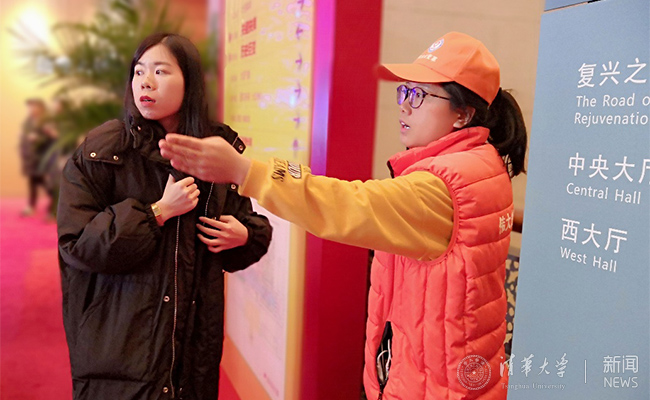 清华志愿者为参观者提供咨询与引导