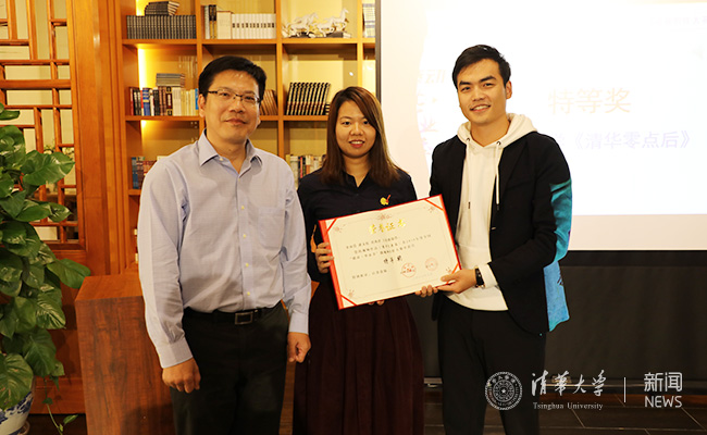 光明日报副总编辑陆先高为《清华零点后》制作团队代表颁奖 光明日报供图