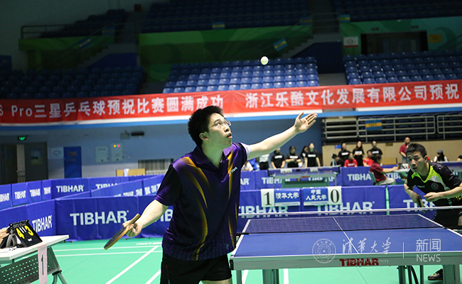 小组赛中,由信息学院硕士生林子钏、电机系硕士生陈正颖、材料学院博士生苏一博、机械学院本科生周冉和经管学院本科生马浩云组成的男子团体,以及由新闻与传播学院硕士生胥佳、工物系本科生张妍、建筑学院本科生刘明炜、机械学院本科生邹洋和航空航天学院博士生梁紫微组成的女子团体分别轻松战胜对手,每场大比分3:0不负一分,以小组第一的身份进入十六强。