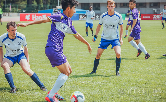 双方队员在球场上努力拼抢。 王鹤霖 摄