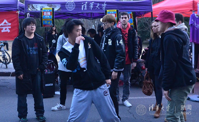 史宗恺和学生街舞社前会长万里扬交流。舒宜彬 摄