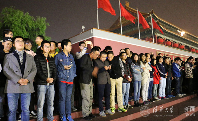 “在10.1这个神圣而庄严的日子里,能去天安门还能上观礼台看升旗,我感到非常荣幸,非常激动。这是我第一次看升旗,当我听到军乐队激昂的号角、看到解放军肃穆的敬礼、想到我们已经结束的20天军旅生活,我不由得对祖国的未来充满了希望、对未来4年的的清华生活充满了信心、对我们班的团支部建设充满了期待。我要坚定信念、努力学习、锻炼身体,为祖国健康工作五十年!6字班祝祖国母亲6得飞起!”,机械学院2016级本科生李浩同学也感慨道。