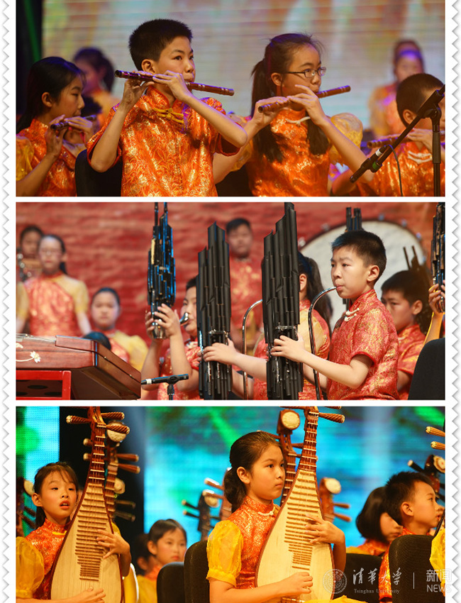 整场展演以“传承家国情怀”为主题,共分五个板块,分别是:民乐,奏出中华民族的最强音;舞蹈,舞出清华少年的新风尚;戏剧,构建儿童的第二重生活;歌声,唱响华夏学子的成志梦;十大卓越学生、百名成志榜样学生颁奖、一年级学生入队。