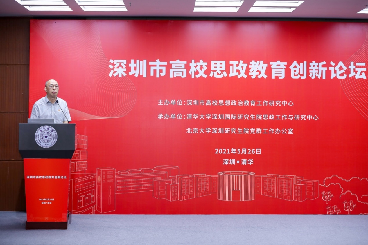 杨平在致辞中介绍了深圳市思政创新教育工作实践中采取的有效举措及成果,并对深圳各高校提出了以先行示范为标准,以更高远的历史站位、更宽广的国际视野、更强烈的使命担当推动深圳思政教育创新发展的期望。