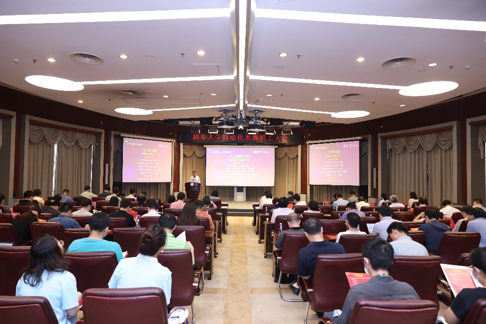 清华新闻网9月13日电 9月10日下午,在庆祝第37个教师节之际,自动化系在信息科学技术大楼多功能厅召开全系教职工大会,回顾2020-2021学年度主要工作,表彰系优秀教职员工,同上“新时代党的教育方针”党课,全面启动2021-2022新学年。系党政班子全体成员、各研究所、实验中心和机关教职员工共120余名参加大会。会议由党委副书记、工会主席古槿主持。