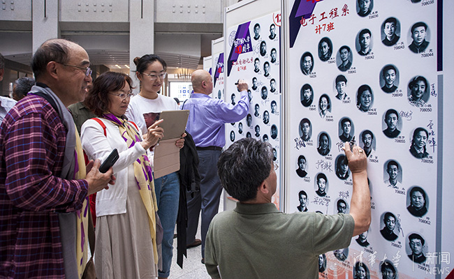 清华新闻网4月29日电    旭日冉冉,清风徐徐。校友们带着喜悦与期待回到阔别多年的清华园。精彩的演出、开放的校园、年轻的面庞,犹如一张张绚烂的剪贴画,播放着校友们曾经的青春过往,唤醒那些闪光的记忆。在照片墙上寻找年轻时的自己;在图书馆里抚摸曾经的求学路;在新清华学堂前重温青春的欢乐;在艺术博物馆里寻找文化的隽永。