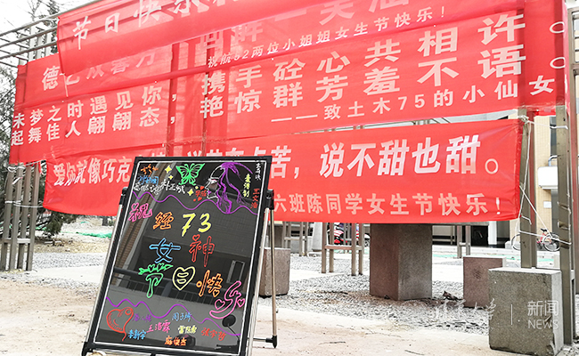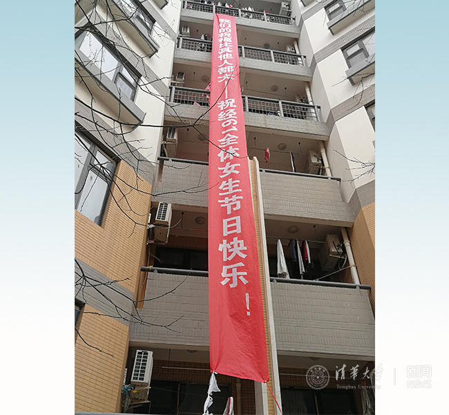 清华新闻网3月7日电 (记者 苑洁 摄)一年一度的女生节,清华的男生们或才思泉涌、或脑洞大开,或灵光乍现,把他们对女生们满满的关爱打印在横幅上,给大家送上最真挚美好的祝福。2018年的女生节,让我们一起来看看这些别出心裁的横幅,也借这些横幅祝清华园里的所有女生,节日快乐!