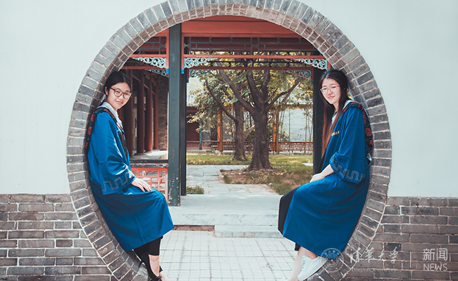 穿上学士服依然可以像童话里的公主一样荡秋千。