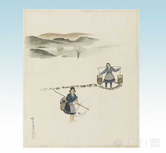 ▲ 庞薰琹《挑水》。 绢、水彩 39.7cm×33cm 1941年