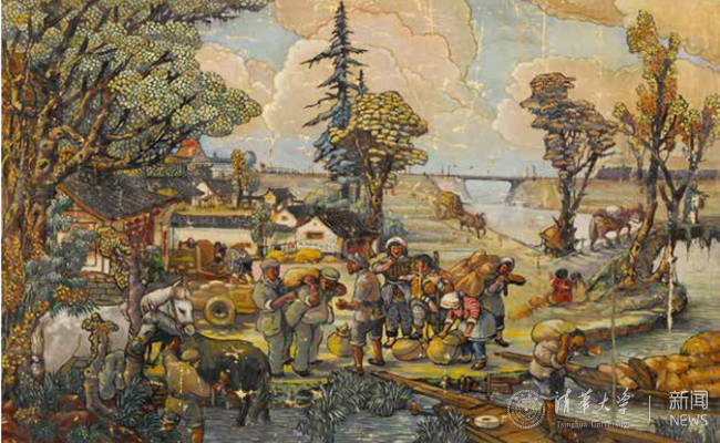 ▲ 雷圭元 《城乡互助 物资交流》。布面油画 81.5cm×129.5cm 20 世纪 50 年代