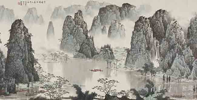▲ 雷圭元 《千丝万缕手中来》。纸本水墨设色 39cm×72cm 20 世纪 50 年代