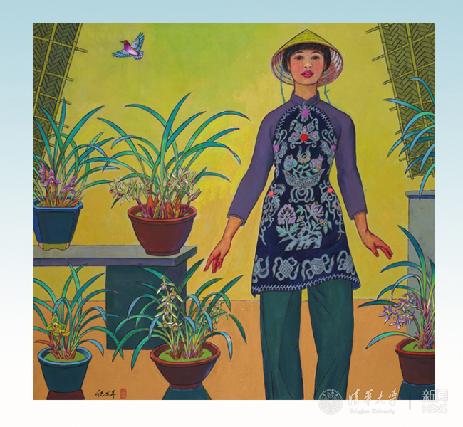 ▲ 祝大年 《兰花姑娘》。 纸本工笔重彩 91cm×97cm 20 世纪 70 年代