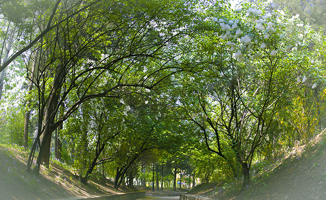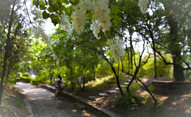 清华新闻网4月23日电 (记者 苑洁 摄)《诗经·小雅》中有诗句“春日迟迟,卉木萋萋。”春天的清华园,水清木华,清新朦胧。小径里、栏杆处,绿意醉人,诗情盎然。
