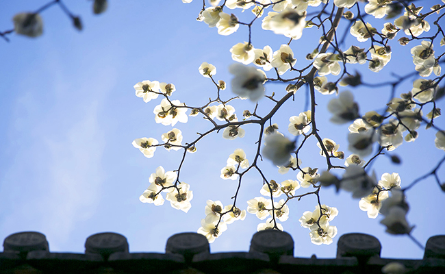 清华新闻网3月29日电(记者 苑 洁   在一朵花的眼中,清华也许是清晨车流汹涌的学堂路,也许是午后斜阳下的北院旧址,也许是傍晚花枝间摇曳的自习室的灯光,也许是荷塘初绿时游人交织的藤影荷声。每一朵花都是一段爱的诉说,映衬着这个春天于清华最动人的邂逅。
