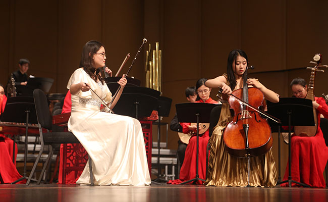 民乐队队员表演《牧民新歌》。旷思敏 摄