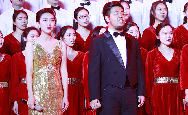 微电子工业工程合唱队在现场演唱。王渊浩 摄