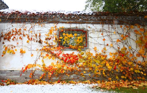 清华园迎来了今年的第一场雪,古园雪霁、秋意正浓,满拥眼底的都是初雪时节的淡淡暖意,雪白主调的清华园里延续着爱的故事,四时变化中的清华古园满蕴生机。