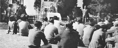 图为长沙临时大学南岳分校欢送从军同学会场。