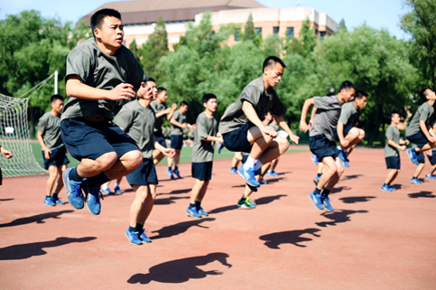 6:05,迈着整齐的步子,飞行员班的三个区队准时在紫荆操场上出操。当整个校园还在沉睡中时,他们已经开始了在操场上一圈又一圈的奔跑。