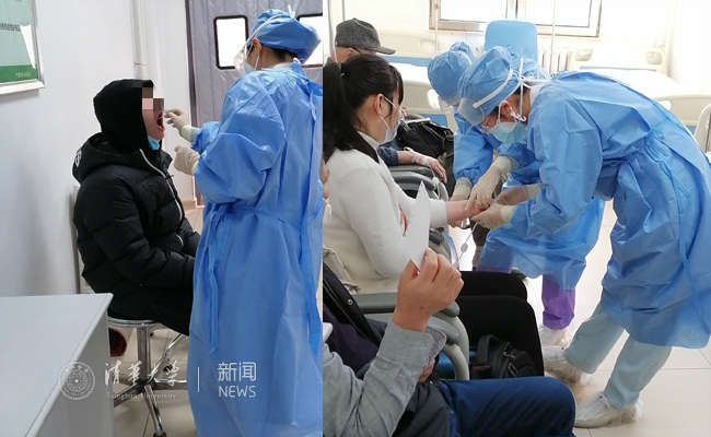 校医院发热门诊预检分诊护士和保安坚守岗位
