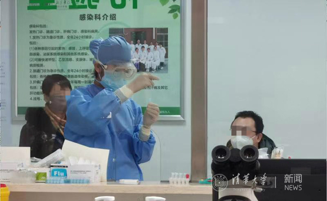 二附院将急诊科改为发热门诊,两位医护人员正在紧张地工作