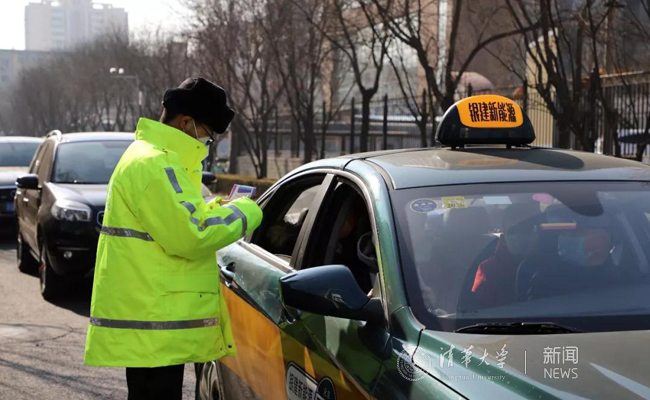 对从清华西门进入的人员进行检查