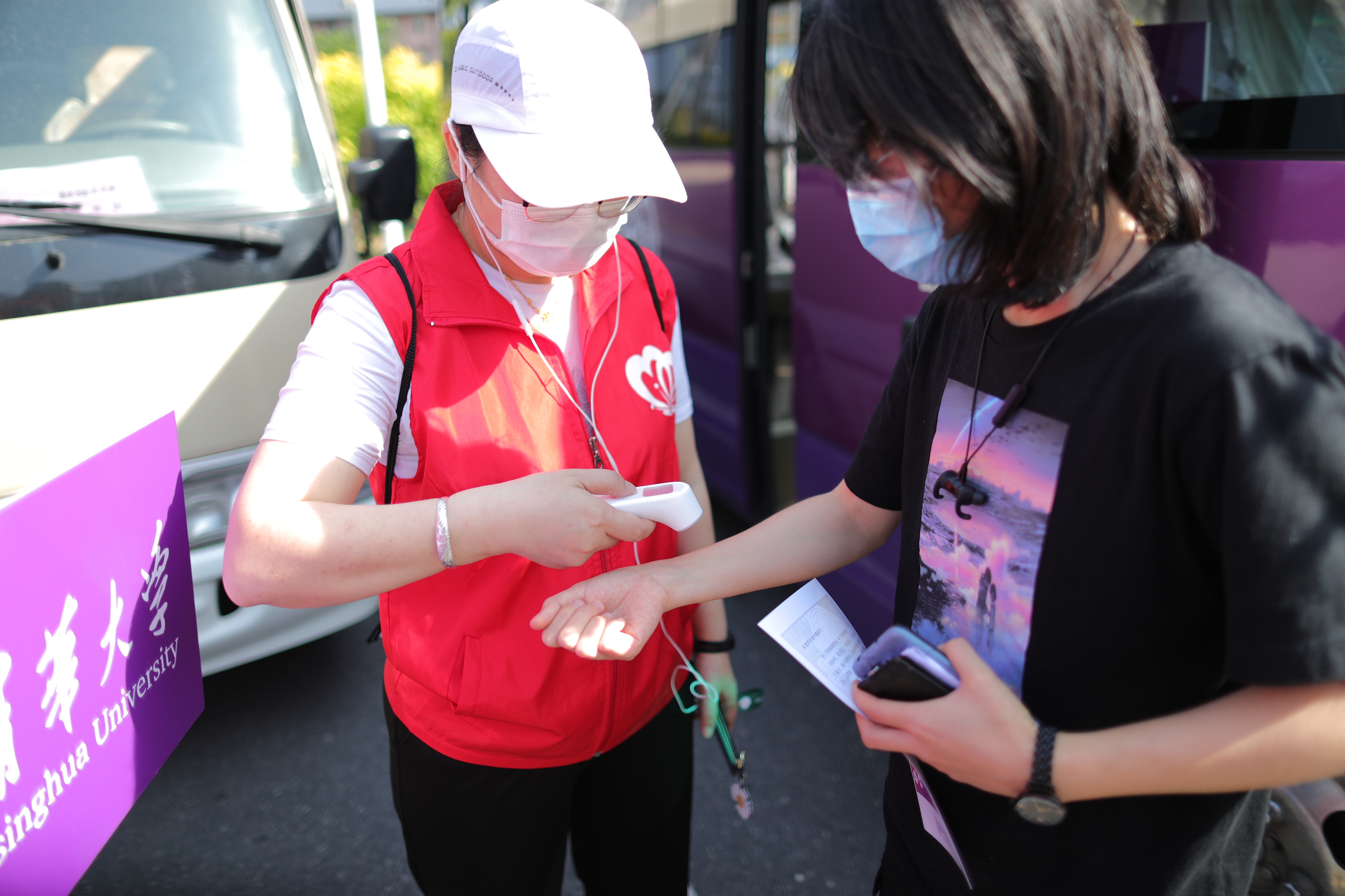 志愿者为每一位返校同学测温