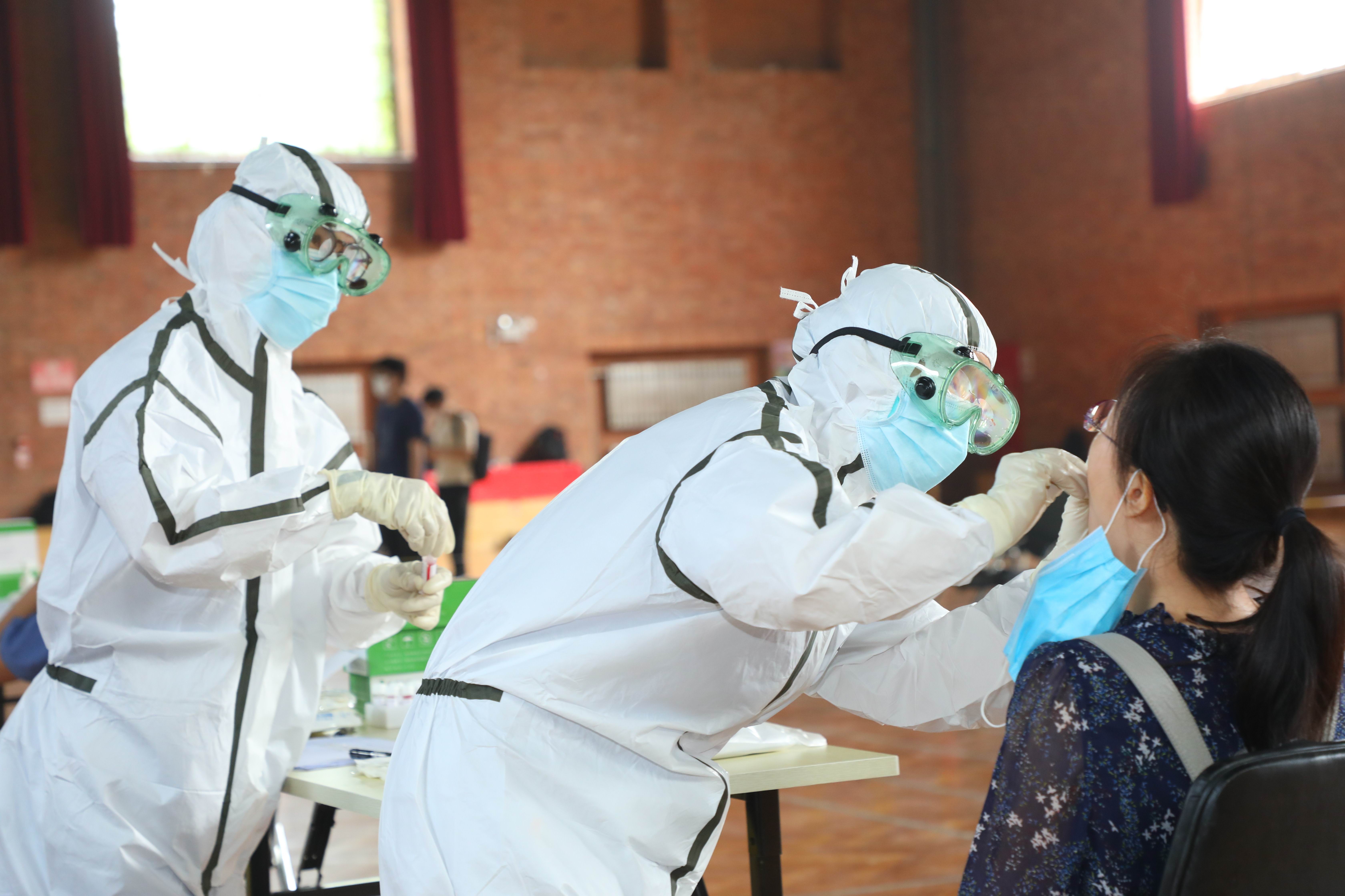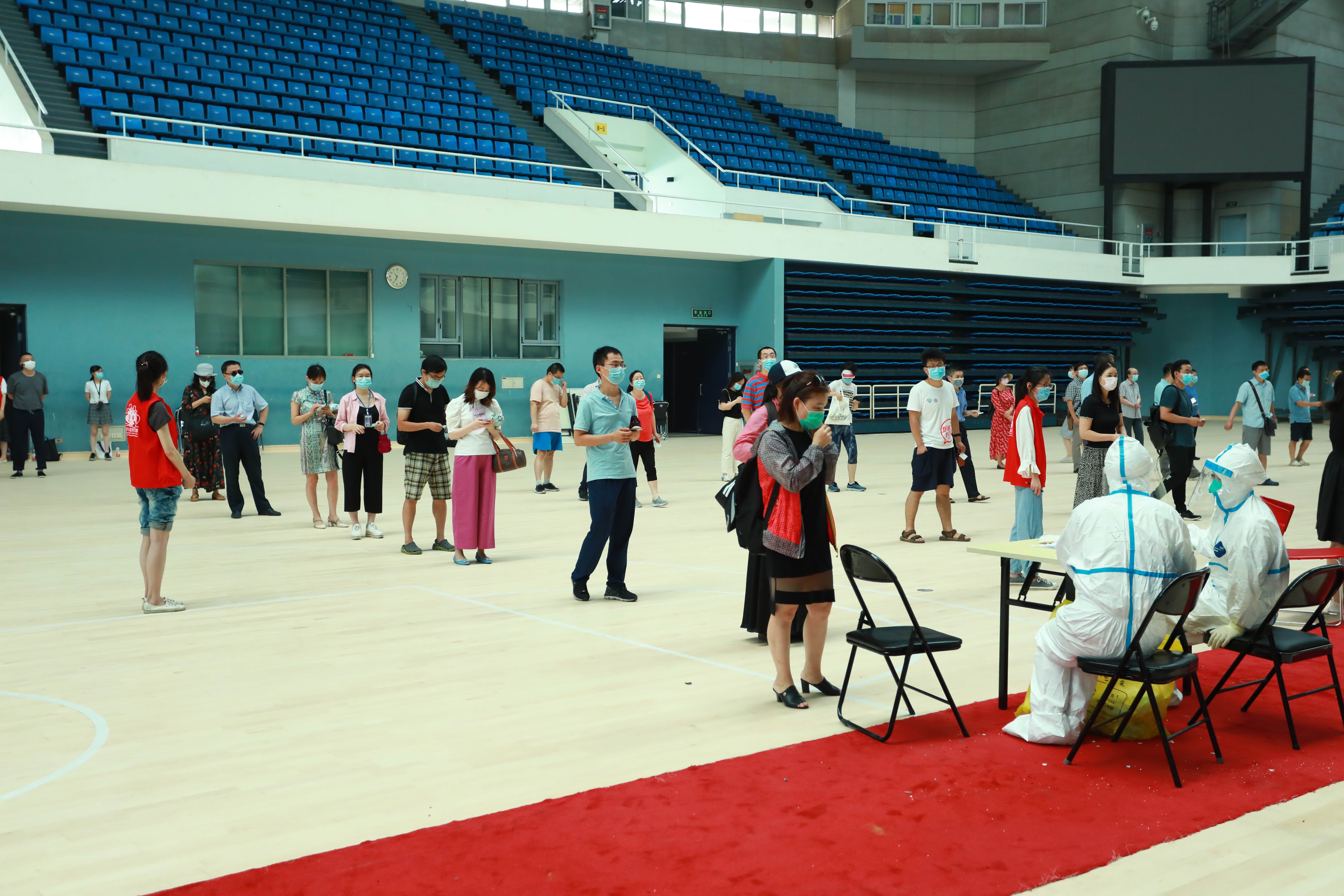 来自清华长庚医院、清华一附院的医护人员“全副武装”,耐心地为大家采样。累计150余位身着红马甲的校机关志愿者也积极参与了相关志愿服务工作。