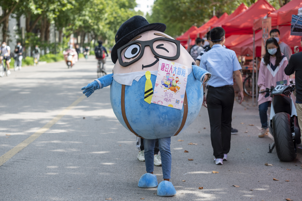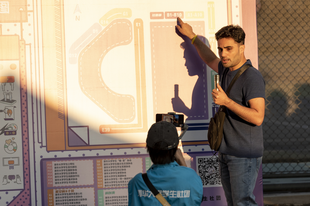 受疫情影响,部分国际学生尚无法返校。因此,今年的联合招新采取了线上、线下相结合的新模式,新增了线上直播环节,通过“雨课堂”直播平台,让远在异地的同学也能身临其境般地感受到清华独特的社团文化。同时,根据疫情防控要求,线下现场的社团展位采用“间隔式”布局,工作人员也在主场区引导师生保持社交距离、提醒佩戴口罩。