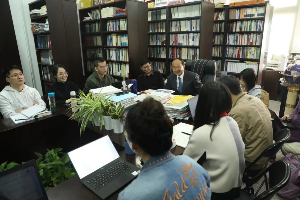 张明楷与同学们在一起讨论。