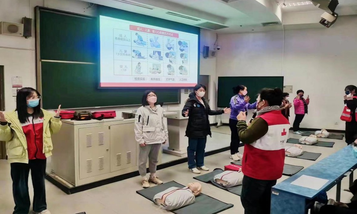 3月18日至19日,学生红会面向全校师生职工组织开展了心肺复苏和自动体外除颤仪(AED)使用技能大型培训,共224人参与培训。海淀区红十字会讲师授课生动有趣,参与培训的师生职工认真听讲,全员参与实操训练并顺利通过考核。