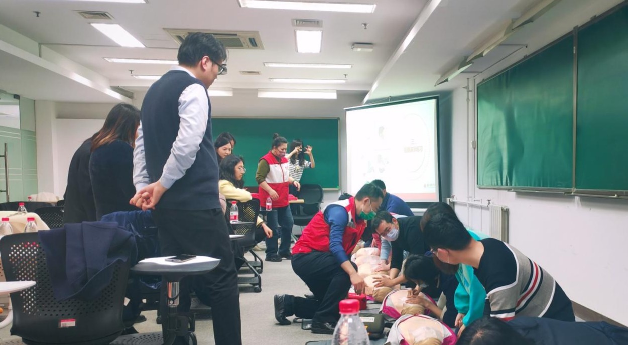 3月20日,应丘成桐数学中心邀请,学生红会为其开展了专场急救培训,数学中心20位教师、博士后研究人员等参加培训。学生红会邀请了海淀区红十字会指定的两位急救培训师,讲解了心脏骤停的相关知识,并针对心肺复苏技术和AED的使用做了详细讲解。数学中心的教师们两两一组,在培训师和学生红会志愿者的指导下,使用假人和AED模拟机上手操练、反复练习,最终全部通过考核,获得了救护技能认证。
