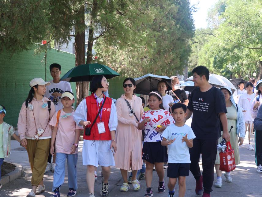 校园讲解拉近了来自五湖四海的“游客”与清华的“距离”,也为远道而来的孩子们播下了梦想的种子。建筑学院2019级本科生刘韫楷作为站点志愿者为参观者服务,他说:“非常高兴能在自己学习成长的清华园里,为远道而来参观的游客服务。”社科学院2022级硕士生王冬梅则坦言,自己也曾作为参观者跟随志愿者的讲解了解校园,在过程中发现很多家长借着听校园讲解的契机,鼓励孩子好好学习,这激发了她对这份工作意义的认同感,“成为讲解志愿者后,我也会把一些鼓励孩子的励志话语与校园历史风物、红色讲解内容结合起来,这个过程让我感到非常有意义。”