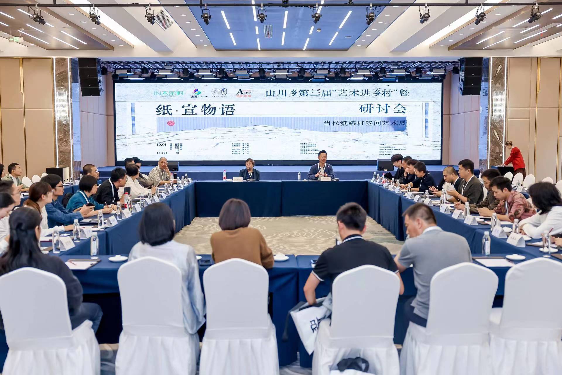 当天下午,学术研讨会在线上线下同步举行,以“纸·宣物语——当代纸媒材空间艺术展”为核心,探讨纸文化在当今社会的多元价值和潜力、艺术赋能乡村与艺术和谐发展等议题。研讨会由景德镇陶瓷大学教授、陶瓷美术学院学术委员会副主任宋伟光和李玉仓共同主持。