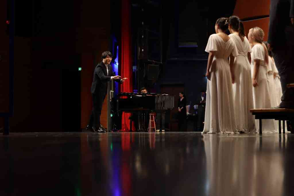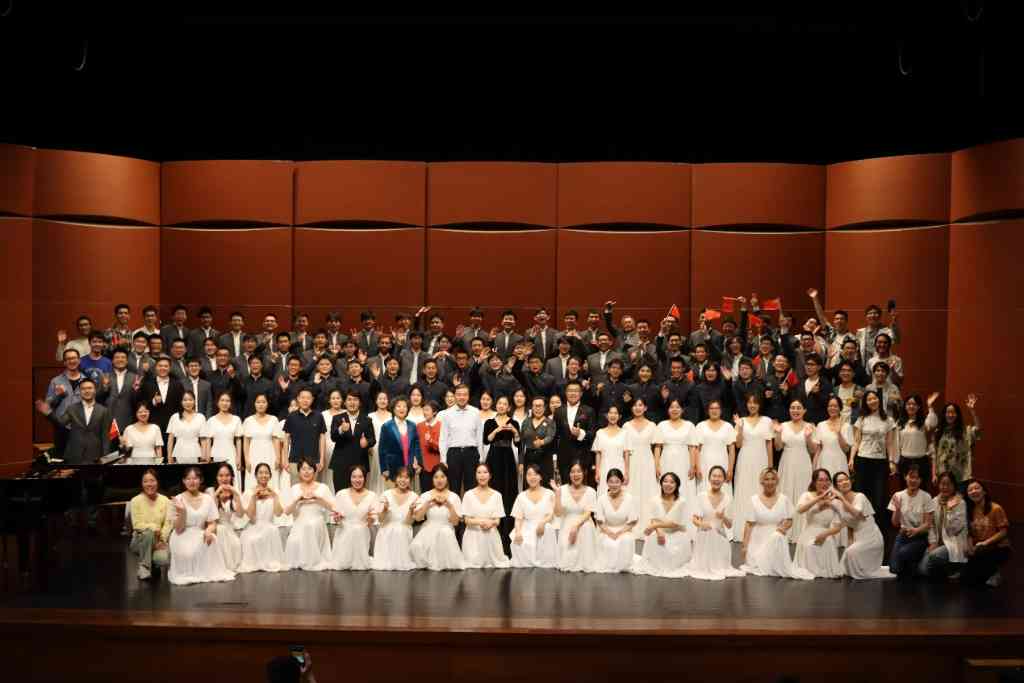 合唱队指导教师、常任指挥丁毅指挥合唱