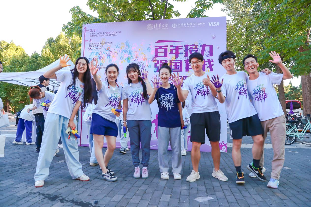 下午四点半,以“‘清’春,共续‘华’章”为主题的庆祝新中国成立75周年接力跑正式开跑,2000余名师生参与其中。跑步沿途设置主题活动站点,以收集立体明信片碎片的形式串联起新中国成立75年来的重大历史事件,让师生们在跑步和游戏中增进对新中国史的了解,在潜移默化中厚植爱国情怀、激发报国热情。