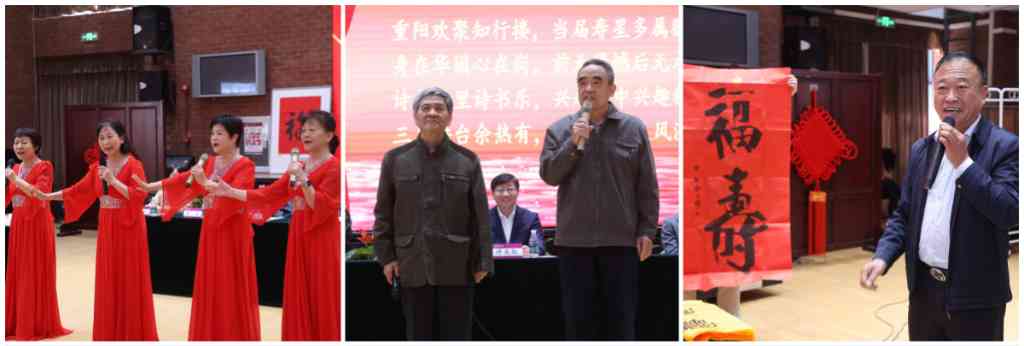 离退休教职工京剧队的队员们演唱了红灯记选段《光辉照儿永向前》,荷韵诗社的社员们朗诵了专门为活动创作的诗词作品。现场还展示了学校老年书画研究会的成员创作的福寿书法作品,并送给现场参会的离退休教职工。